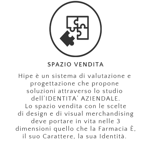 Hipe accompagna la Farmacia in un processo di cambiamento: a partire dallo studio dell’identità aziendale, applica una metodologia pratica di crescita, che coinvolge lo sviluppo delle competenze delle risorse umane, l’evoluzione del punto vendita e lo studio di una specifica strategia comunicativa, accompagnata da un periodico monitoraggio dei risultati.